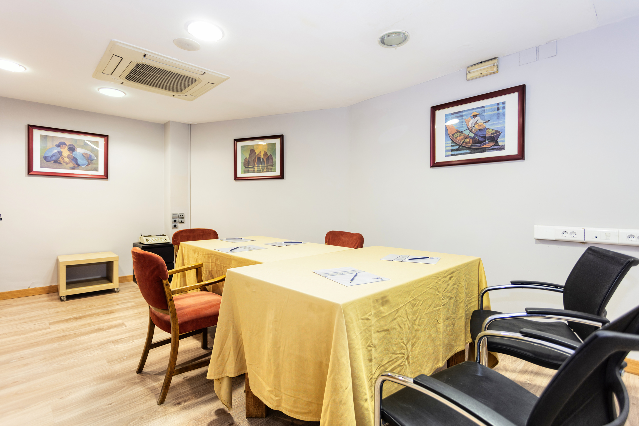 Sala perfectamente climatizada con calefacción y aire acondicionado. Dispone de wifi teléfono, servicios audiovisuales como proyector y pantalla.. etc..